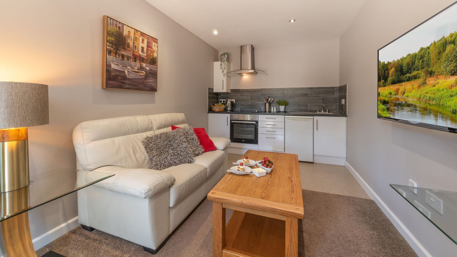 • Flat screen TV with Freeview channels, free Wi-Fi